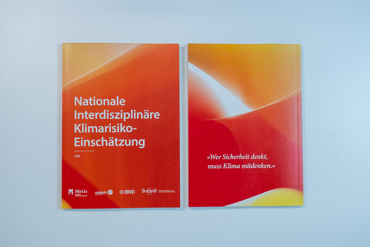 Diese Risiken zeigt die »Nationale Interdisziplinäre Klimarisiko-Einschätzung« auf. Gemäß der Nationalen Sicherheitsstrategie (2023) der Bundesregierung wurden das Metis Institut für Strategie und Vorausschau der Universität der Bundeswehr München, das Potsdam-Institut für Klimafolgenforschung, adelphi research und der Bundesnachrichtendienst damit beauftragt, einen Bericht zu den Auswirkungen der Klimakrise auf die nationale Sicherheit vorzulegen.
